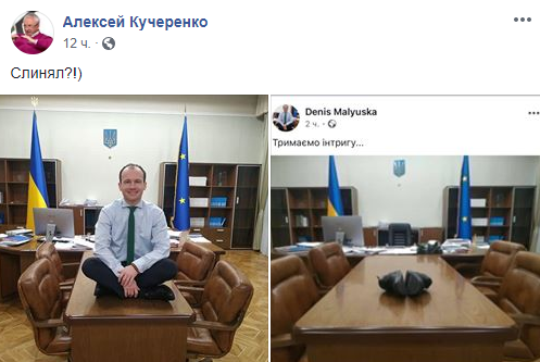 На официальной странице министра была опубликована фотография, где на пустом столе стоит пара мужских туфель. Фото подписано фразой “держим интригу”.