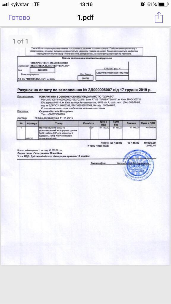 Препарат дорогой, одна коробка стоит 23 700тыс грн, нужны две. У меня есть 10 тыс, остальное надо собрать и как можно быстрее купить. Хотя бы купить один аппарат до пятницы. И сегодня пришёл монитор для Реанимации киевского госпиталя, надо выкупить, изначально 57 тыс. - 30%, 40 тыс.