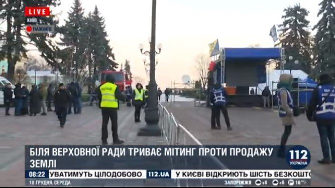В центре Киева возле Верховной Рады утром, 18 декабря, возобновился митинг против продажи земли, который накануне перерос в столкновения с полицией.