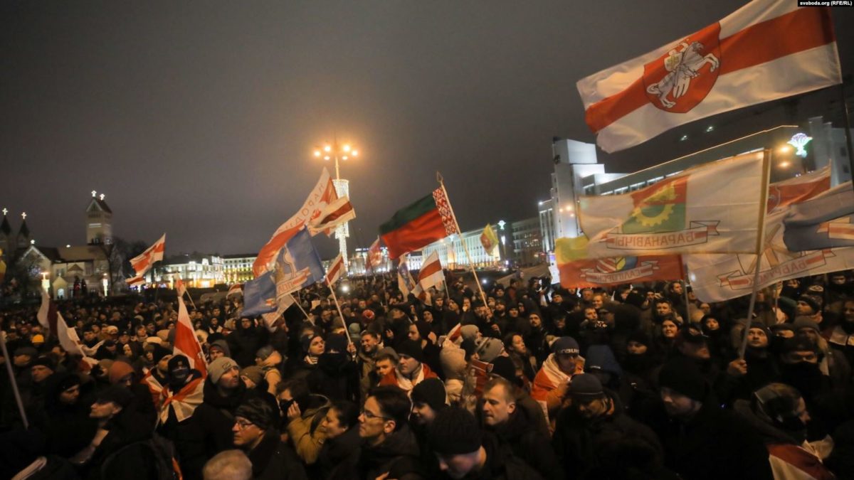 Вечером 20 декабря около полторы тысячи человек вышли в Минске (Беларусь) на протест против углубленной интеграции с Россией.