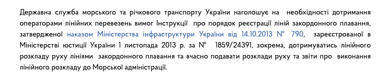 По ссылке сайт Государственной службы морского и речного транспорта Украины. На нем больше половины зарегистрированных линий - туфта; линии, которые нужны только для обеспечения скидок конторам типа Метинвестов. На странице этого же сайта строгое указание: