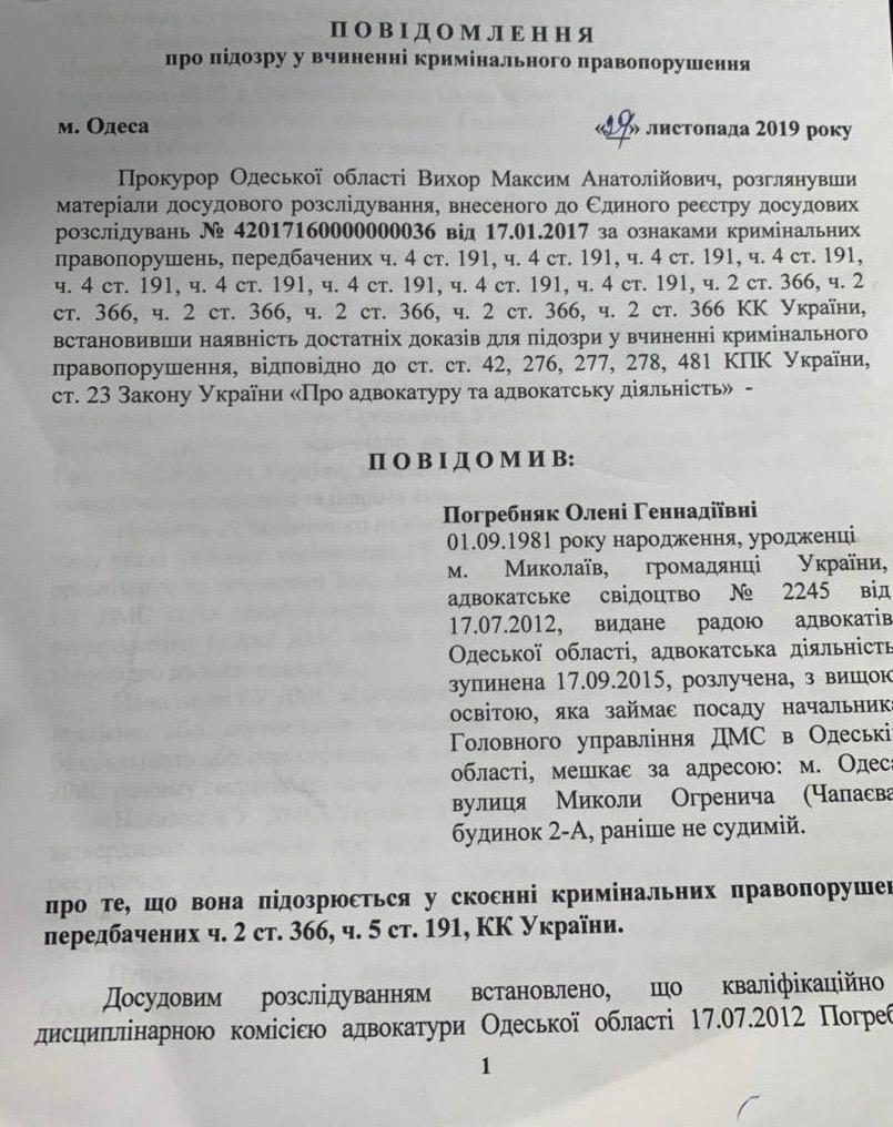 На данный момент Елена Погребняк занимает должность начальника Главного управления Государственной миграционной службы в Одесской области. В декабре этого года следователи Государственного бюро расследований сообщили ей и ее заместителю подозрение в присвоении 898 тыс. грн. Также, чиновницей занялись и в прокуратуре Одесской области.