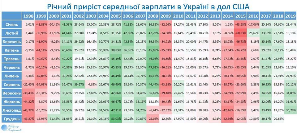 В ноябре 2019 средняя зарплата в Украине достигла исторического максимума в 444 долл США и предполагается, что в декабре будет преодолена психологическая отметка в 500 долл США.
