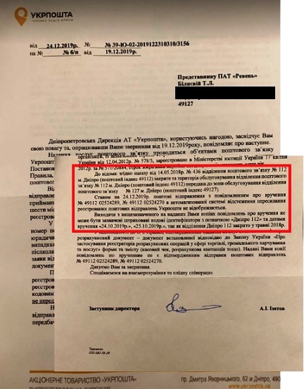 Але «Укрпошта» відповіла, що відділення, з якого начебто надсилали повідомлення, закрили у травні 2018 року.
