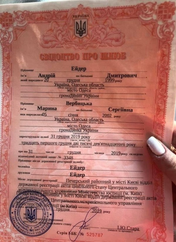 Двадцатилетний жених и 17-летняя невеста оформили свои отношения в Киеве.