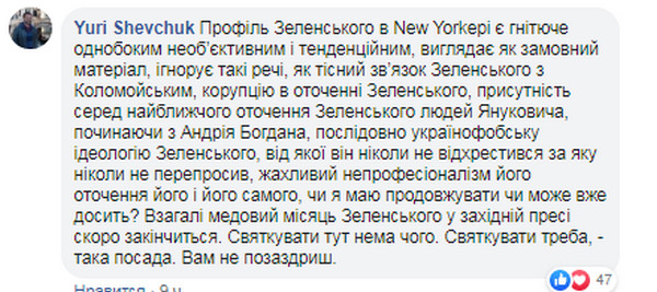 «Среди достижений прошлого года считаю первый профайл украинского президента в The New Yorker и первую обложку Time с украинским президентом. Хотя основная заслуга здесь, конечно, не пресс-службы, а самого Владимира Зеленского. Пока украинский президент превращается в одного из самых влиятельных людей в мире, нам, украинцам, стоит ожидать еще больше приятных новостей в 2020 году», — написала она в Facebook.