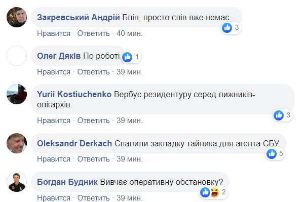 У украинцев фото вызвали бурную реакцию. "Бедный, на Буковель денег не хватило", "Блаблакаром через попутку из Омана", "Ничего не меняется", "Вербует резидентуру среди лыжников-олигархов?", "Сейчас наберу Зеленського по поводу етого черта", "Глава СБУ, а конспирация на 0", "Конец эпохи бедности", "На спецзадании?", "В стране хоть кто-то есть?" – написали в комментариях.
