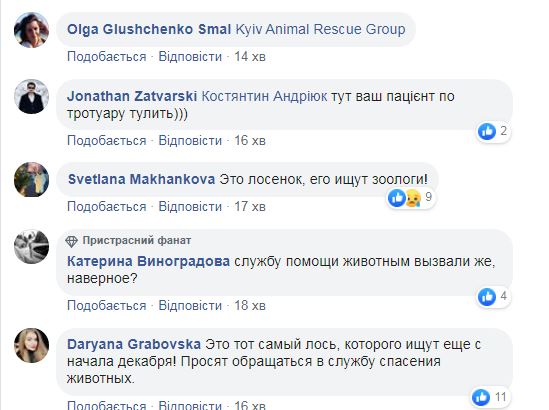 В Киеве в районе проспекта Науки на улице заметили разгуливающего лося. Возможно, это именно то животное, которого еще с прошлого года пытается найти команда зоозащитников.