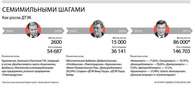 С доходом почти $5 млрд ДТЭК заняла третье место в составленном Forbes списке крупнейших компаний Украины. Выше только металлургические гиганты – ахметовский же «Метинвест» и ИСД. Впрочем, прошлогодние показатели уже не отображают реального размера компании. С учетом последних приобретений выручка ДТЭК за 2012-й, по прогнозам аналитиков инвесткомпании Dragon Capital, составит около $10 млрд. Это уверенное второе место.