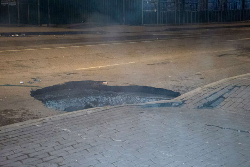 По данным источников Информатор Киев, провал случился в промежутке между 23:00 и 07:00. Из ямы активно идет пар.