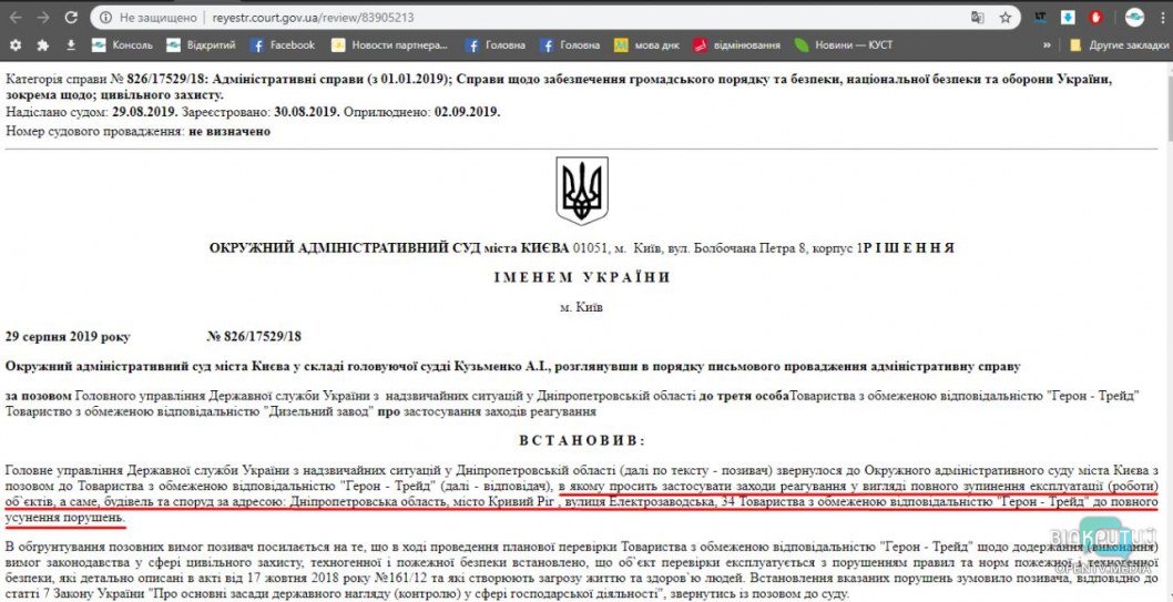 Впрочем, юристы Дизельного завода снова «нашли подход» к Фемиде, и успешно обжаловали решение первой инстанции в Шестом апелляционном суде. 17 декабря 2019 года он вынес решение в пользу предприятия на основании результатов якобы внеплановой проверки предприятия. Однако удостовериться, что такая проверка действительно была, не представляется возможным: поиск акта и выводов ГСЧС результатов не дал. Поводов усомниться в объективности судебного решения несколько.