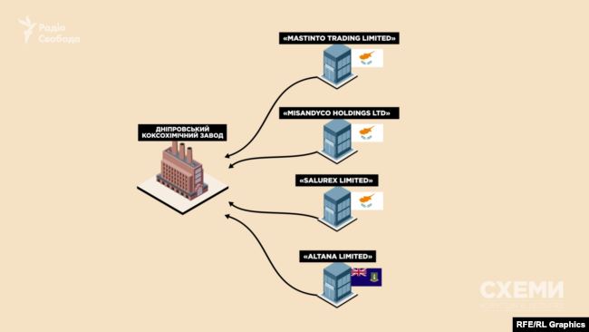 На момент вибуху, у січні 2019 року, Дніпровський коксохімічний завод формально належав трьом кіпрським компаніям: «Mastinto Trading Limited», «Misandyco Holdings Ltd», «Salurex Limited» та одній офшорній «Altana Limited» (Віргінські острови).