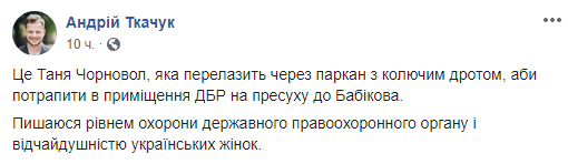 Очевидно, что Черновол очень хотелось пообщаться с Бабиковым, так как ей пришлось преодолеть двухметровый забор с колючей проволокой.