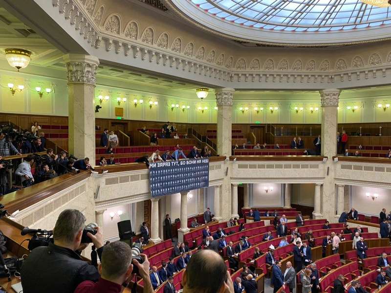 Народні депутати фракції «Голос» вивісили у стінах Верховної Ради банер з героями Небесної Сотні.