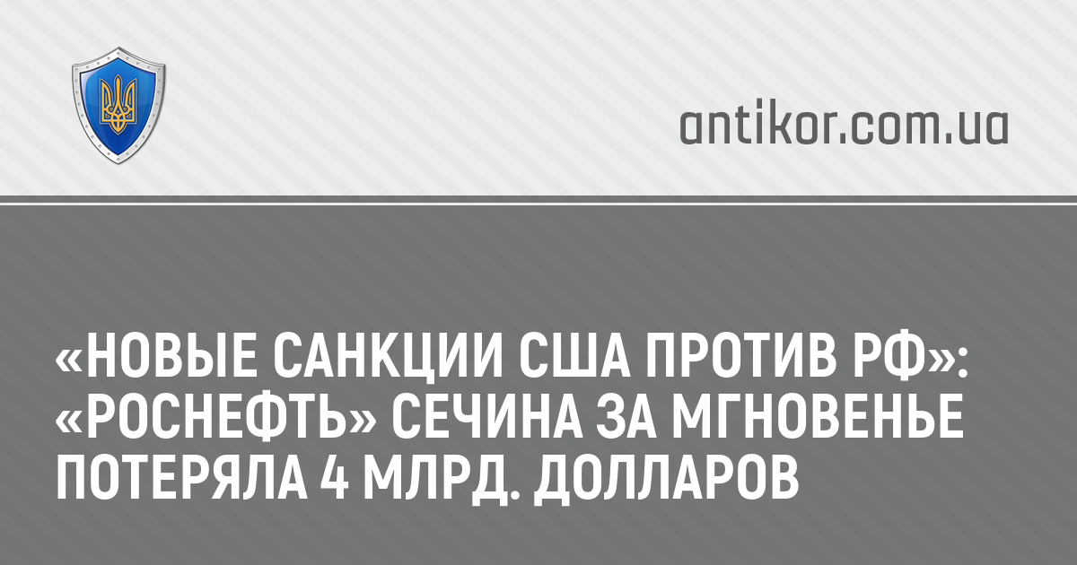 «Новые санкции США против РФ»: «Роснефть» Сечина за мгновенье потеряла 4 млрд. долларов
