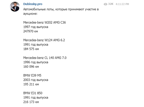 Уже в начале февраля Дубинский объявил о продаже 3 "мерседесов", переписанных на мать в декабре, и двух BMW, принадлежавшие ей ранее.