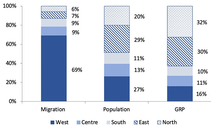 Мигранты, население и валовой региональный продукт (ВРП) по экономическим регионам