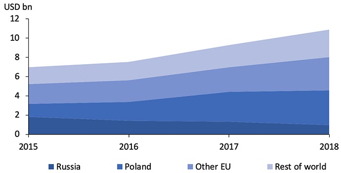 В 2019 году трудовая миграция из Украины замедлилась, но не понятно, является ли это общим замедлением миграции. Возможно, это связано с уменьшением разницы в заработной плате, или отражает переходные явления в течение “избирательного” года.
