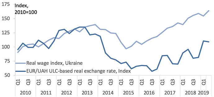 Сейчас это не так: реальный обменный курс на основе удельных затрат на рабочую силу, который измеряет относительные затраты на труд в Украине по сравнению с Еврозом, пока восстановился до уровня 2010 года. Занятость в Украине также в последнее время увеличивается в соответствии с ростом ВВП.