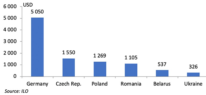 Разница в оплате труда между Украиной и другими европейскими странами остается большой. Хотя среднемесячная зарплата в Украине значительно возросла, со 192 долл в 2015 году (самый низкий показатель во время экономического кризиса) до 326 долл в 2018 году, это лишь около четверти средней зарплаты в Польше или Чехии и менее одной десятой части зарплаты в западных или северных странах ЕС.
