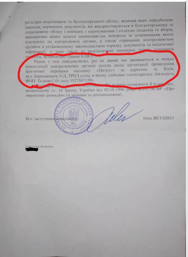 Отвечая на обращения участников моего эксперимента налоговая начинает процедуру массовой проверки этой сети по факту того самого уклонения от уплаты налогов через ФОПов.