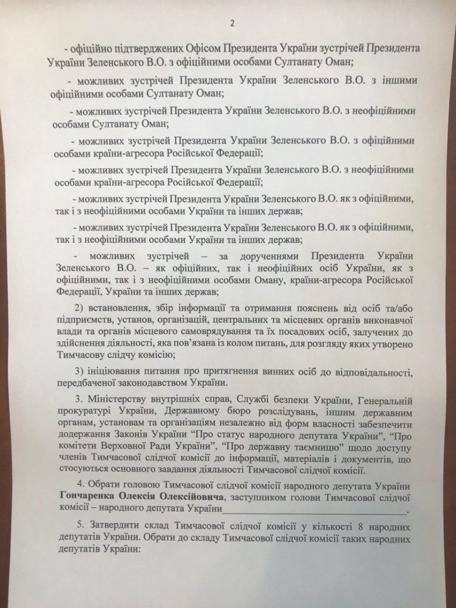 Народный депутат из фракции «Европейская солидарность» Алексей Гончаренко направил в Верховную Раду постановление о создании Временной следственной комиссии (ВСК) по поездке президента Владимира Зеленского в Оман.
