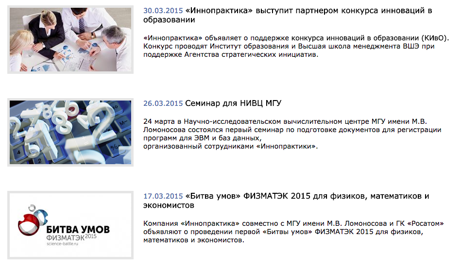 Что же касается какой-либо конкретики, мы видим, что Иннопрактика организовывает конкурсы для студентов и семинары.