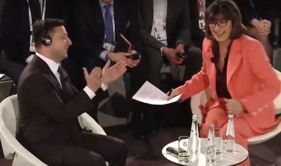 Также модератор отметила, что наушники большие, а она привыкла работать с маленькими. На что Зеленский пошутил, что у него "большие уши, поэтому и наушники тоже большие".