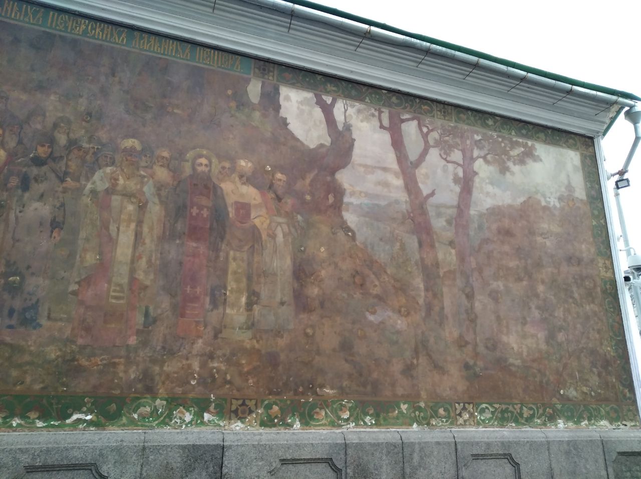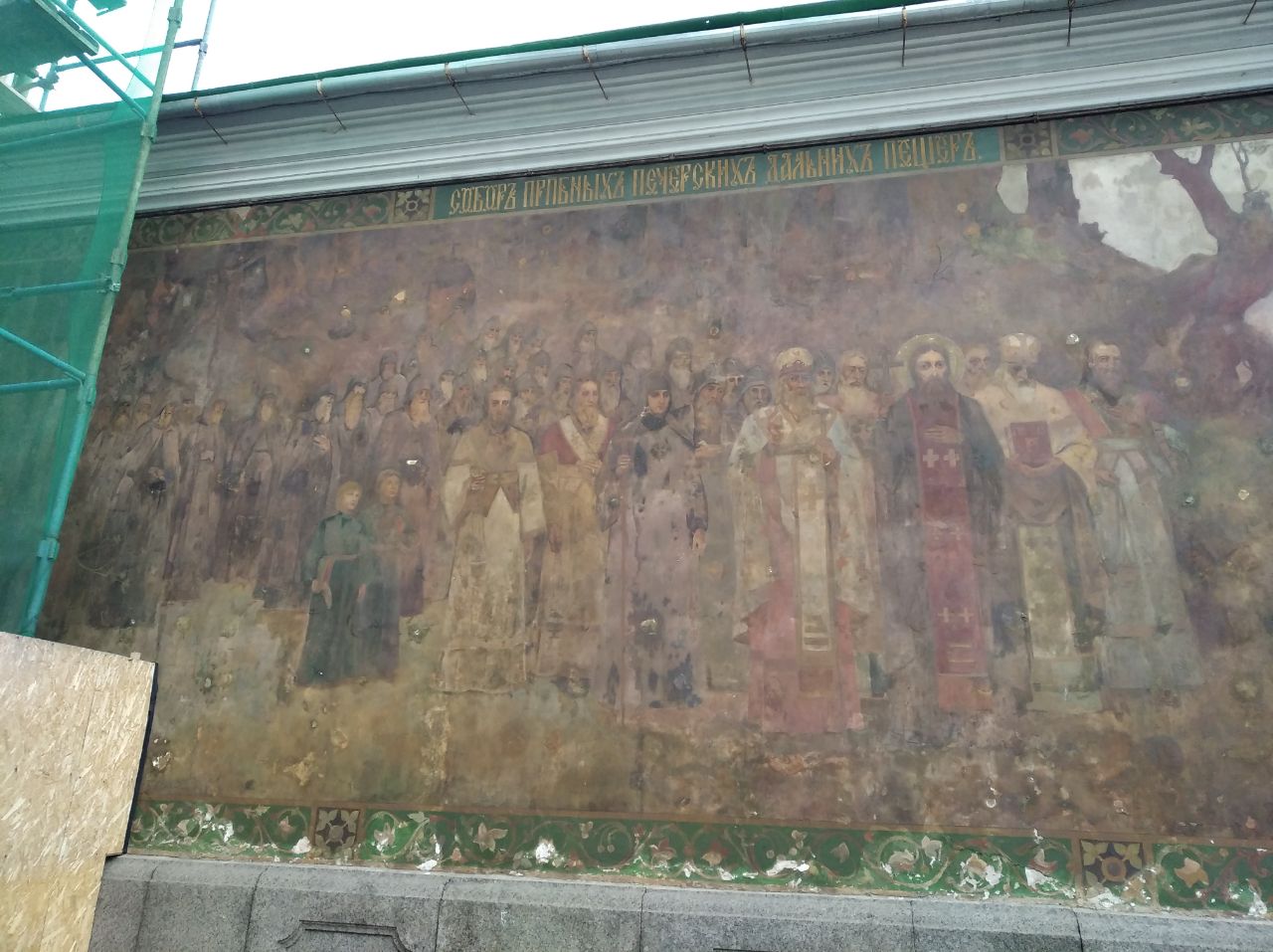 Фрески у входа в Киево-Печерскую лавру покрыли специальной смесью, чтобы уберечь их от воздействия природных факторов.
