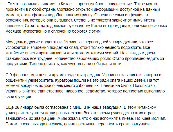 Женщина возмутилась, что еще 26 января с МИД Китая была согласована эвакуация, однако официальный Киев ждал еще целый месяц: "Мы ждали, что о нас вспомнят. Но Киев молчал".