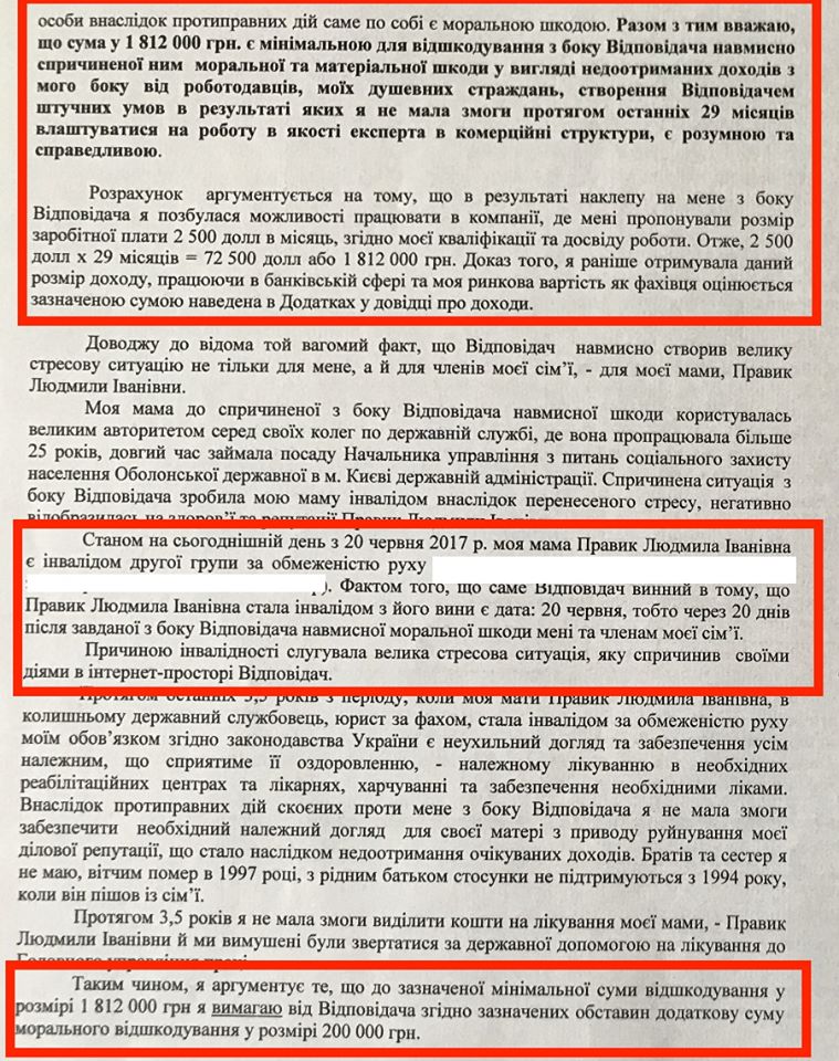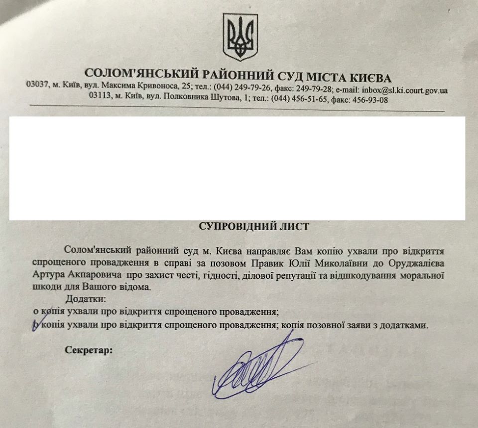 Он также сообщил, что за последних три года Правик неоднократно направляла разные заявления в суды, полицию и киберполицию, но их игнорировали. Но 26 ноября 2019 года Соломенский суд все-таки постановил открыть производство.