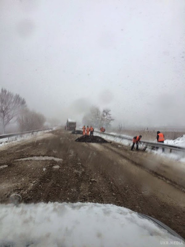 На Львівщині роблять «європейські дороги» в снігопад (фото)