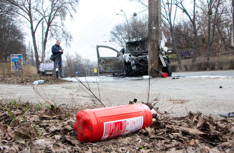 По предварительной информации, которую нам сообщили спасатели, автомобиль загорелся после удара в столб. Пожар быстро распространился на газобаллонное оборудование. Оно вскоре сдетонировало — прозвучали три взрыва.