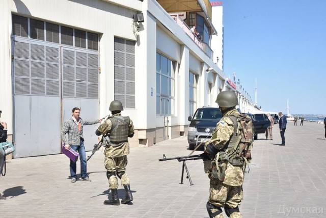 Отметим, что в связи с визитом Петра Порошенко на территории морского вокзала были приняты беспрецедентные меры безопасности. В частности, там были замечены вооруженные автоматическим оружием бойцы одной из силовых структур.