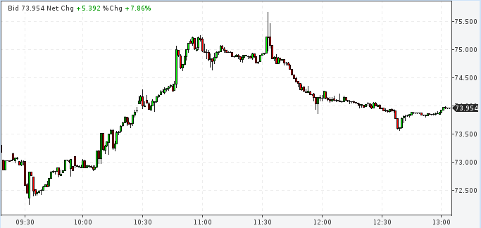 После обвала цен на нефть упал и курс рубля. Так, доллар вырос до 73,95 рубля, а евро до 82,2 рубля, достигнув своего максимума с начала 2016 года.
