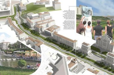 В одном из проектов предлагается возродить реку Крещатик на месте нынешней улицы Крещатик. "Вдоль современной улицы Крещатик когда-то протекала одноименная речка, которую спрятали в коллектор в 1850 году. Мы предлагаем вернуть речку на поверхность и создать тут живописный приречный парк", – говорится в объяснении авторов проекта.