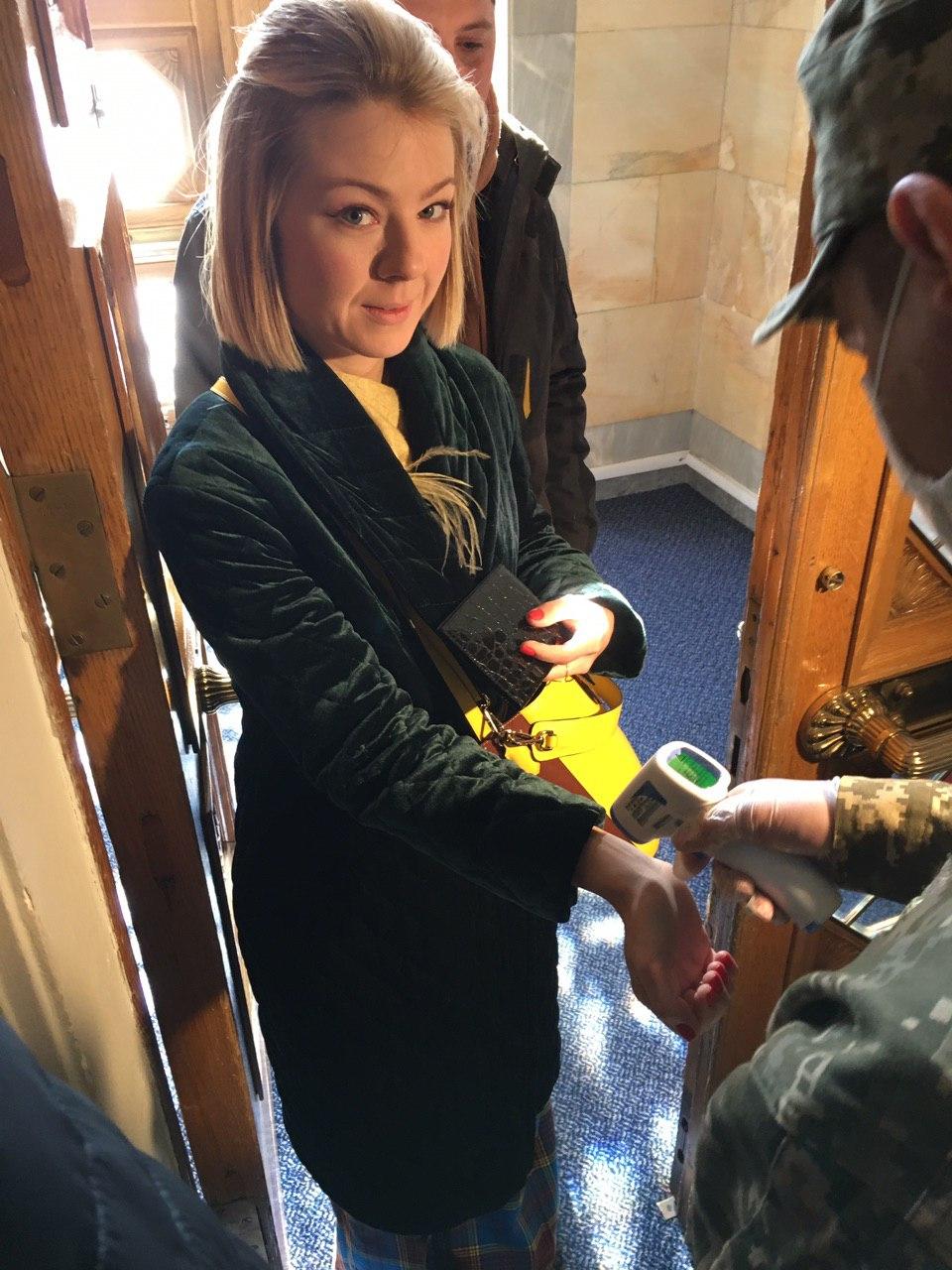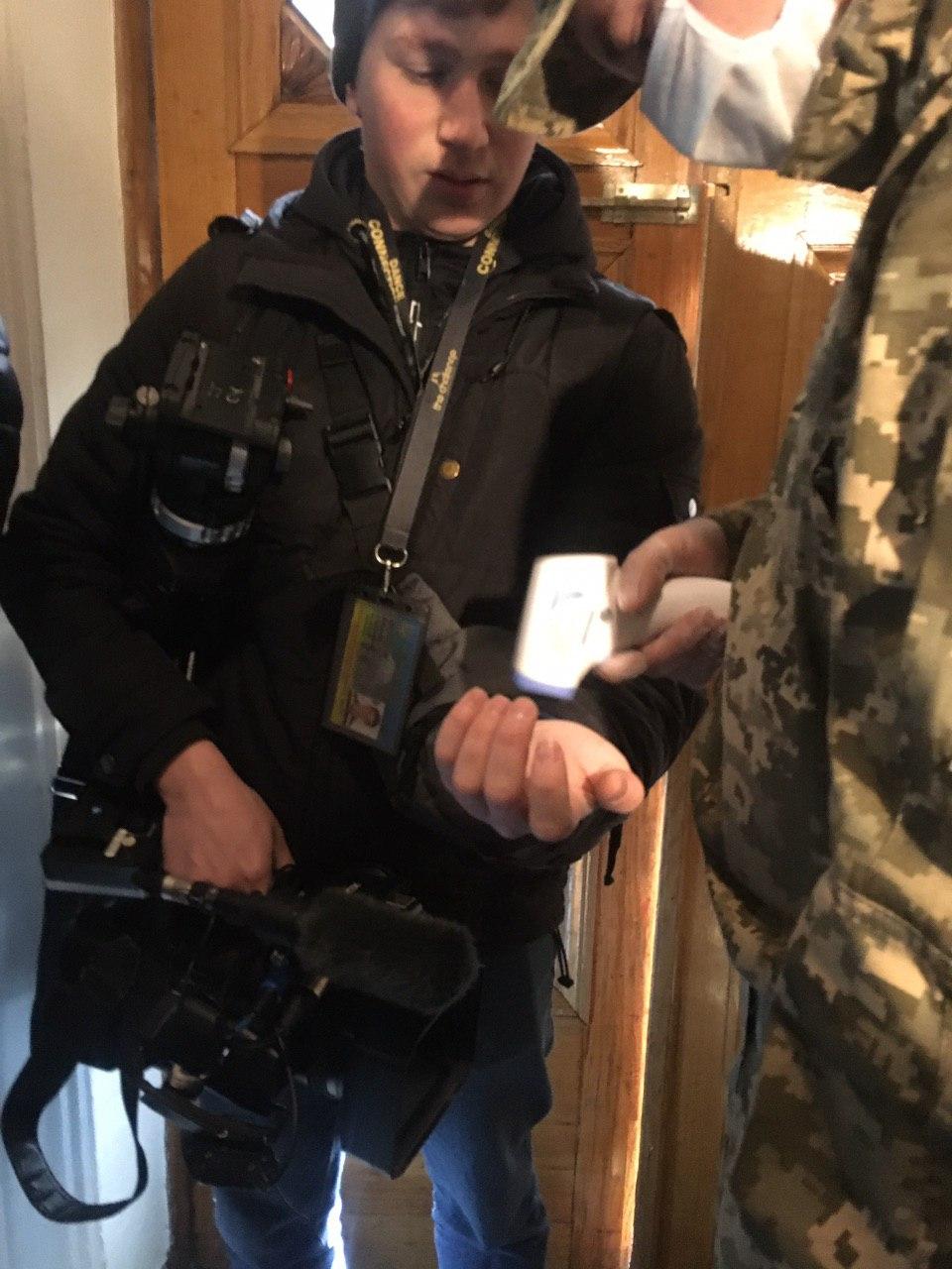 Всем, кто входит в здание Верховной Рады, в том числе журналистам, измеряют температуру. Все сотрудники в масках, а на входе и в коридорах повесили антисептики белорусского производства.