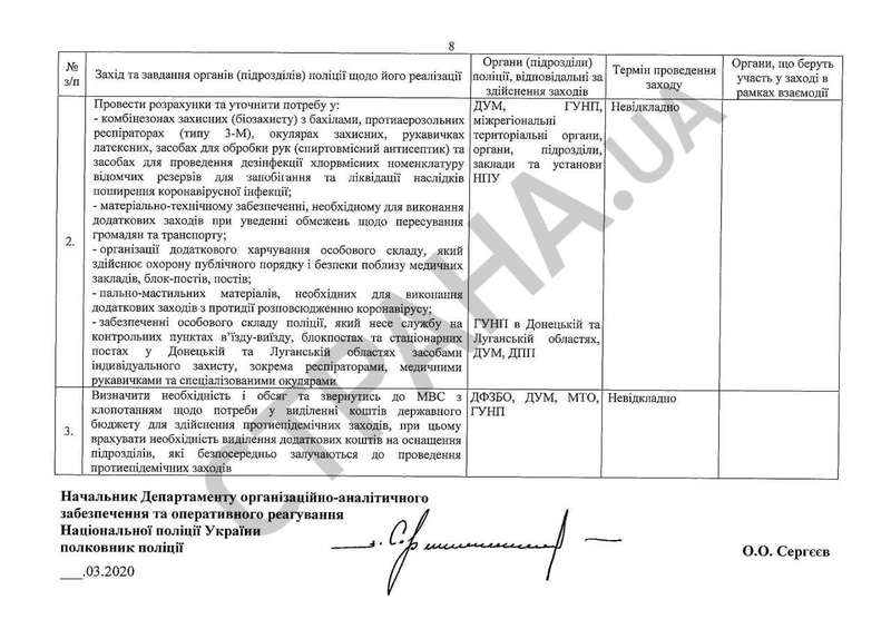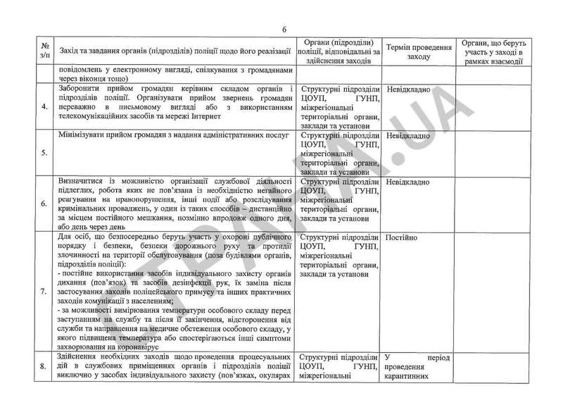 В редакцию СМИ попал приказ главы Национальной полиции Украины Игоря Клименко под номером 220 от 17 марта 2020 года о мероприятиях по противодействию коронавирусу. Журналисты выяснили, что руководство предписало делать полицейским.