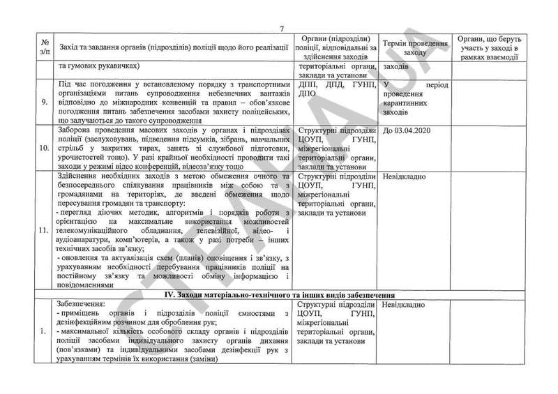 Также глава полиции предлагает передать в подчинение НПУ на время ЧП частей Национальной гвардии. Национальная гвардия и полиция будут осуществлять усиленное патрулирование, не допуская массовые скопления граждан. О борьбе с возможным мародерством в приказе прямо не сказано, но это следует из предложения усилить НПУ частями Нацгвардии.