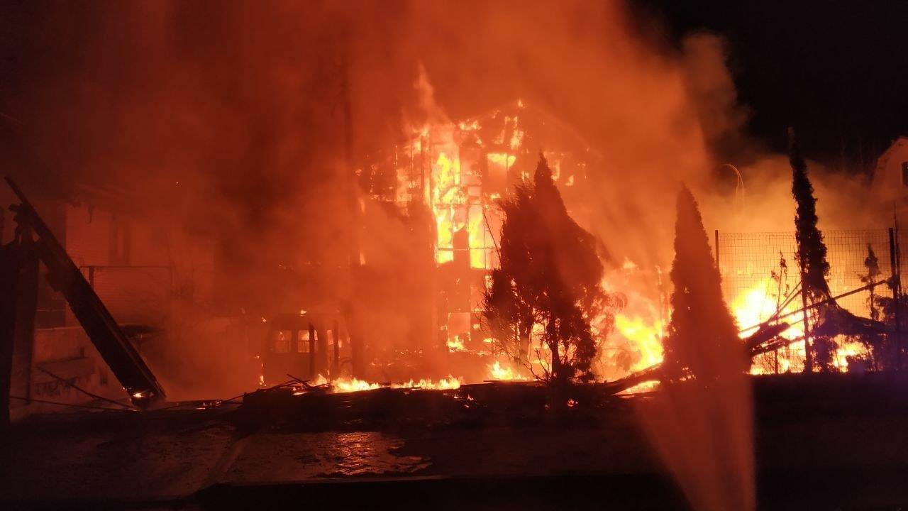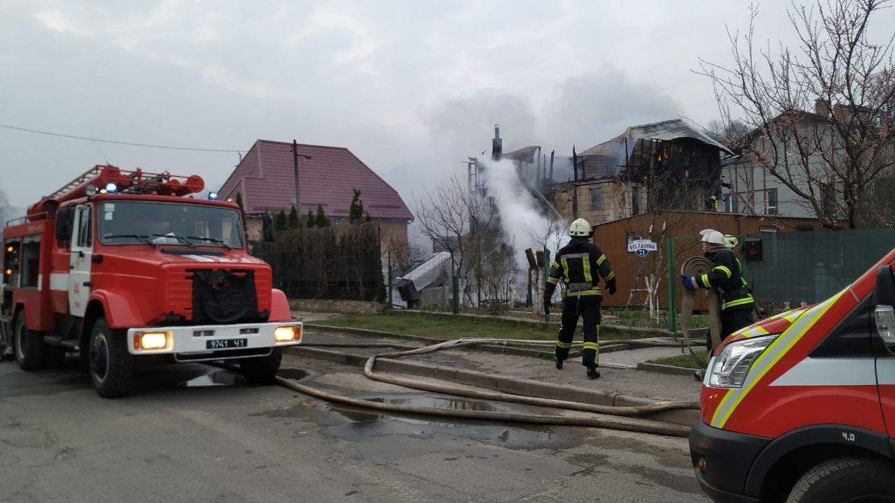 В Голосеевском районе Киева 30 марта вспыхнул масштабный пожар в частном трехэтажном доме на улице Квитки-Основьяненко, 36. В результате здание сгорело дотла.