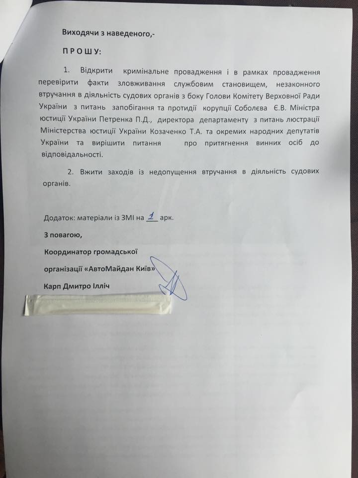 Первым, кто похвастался такой быстрой хваткой СБУ в отношении судей – «общественный люстратор» Карл Волох: «как вы думаете, могут ли судьи, по которым ведется следствие с такими тяжкими обвинениями, рассматривать дела в суде, определяя судьбу страны, в особенности по делам, где у них просматривается откровенный конфликт интересов? Думаю, вряд ли. Так что, как видите, 16 апреля на митинге под КС у нас будут вполне легитимные требования. Отдельный комсомольский привет господам Левочкину и Портнову. Говорите, против вас нет в Украине уголовных дел? Считайте, уже есть.»