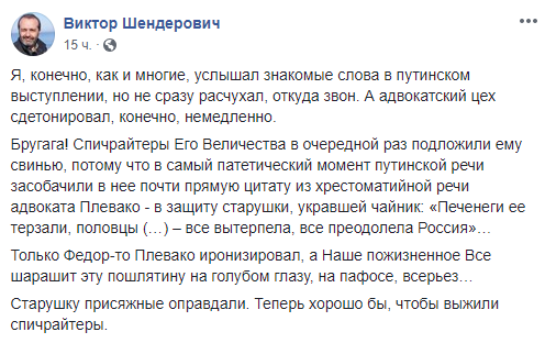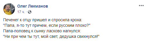 Упоминание Путиным печенегов и половцев повлекло за собой волну шуток в украинском и российском сегментах Facebook. Пользователи поинтересовались, когда в России отпразднуют победу над печенегами и вспомнили другие “исторические успехи” страны. Также заявление президента РФ породило немало “мемов”.