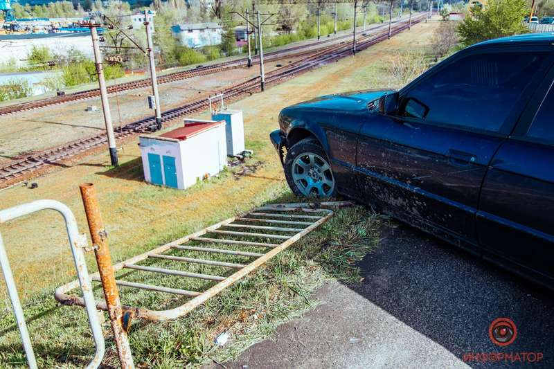 В Днепре на Амурском мосту BMW врезался в отбойник и повис над обрывом