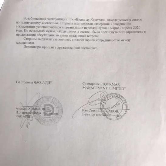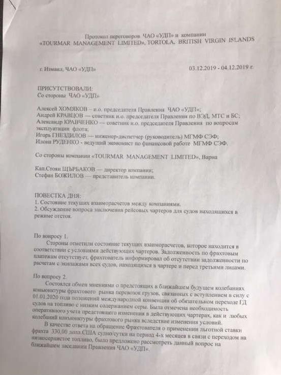 Даже в начале декабря 2019 года Хомяков и Кравцов с барского плеча уменьшили для болгарской компании г-на Щербакова фрахтовую ставку на эксплуатацию судов с 380 до 330 долларов в сутки, что зафиксировано в протоколе переговоров.