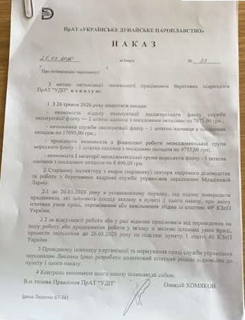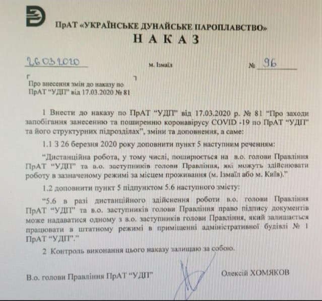В ноябре 2019 года без конкурса был назначен новый и.о. председателя правления Украинского дунайского пароходства Алексей Хомяков.