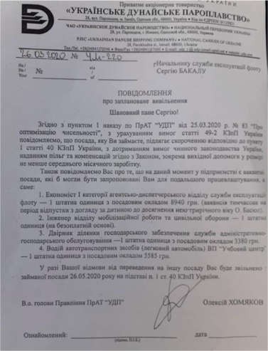 Последние действия Хомякова также вызывают недоумение: руководитель издает приказ о ликвидации ключевого департамента УДП – службы эксплуатации флота, фактически уволив руководителя службы эксплуатации флота УДП г-на Бакало А.С., одного из самых профессиональных и уважаемых людей в пароходство. Параллельно предлагая человеку, проработавшему в УДП с 1990 года, одному из топ-менеджеров пароходства поработать водителем либо дворником.