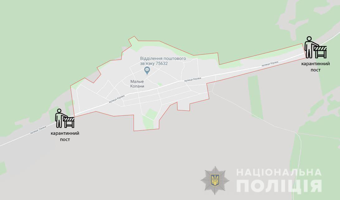 Выехать и въехать в указанные населенные пункты нельзя с 13:00 25 апреля до 6:00 27 апреля. В городе Олешки установлены пять карантинных блокпостов, в каждом из сел – по два.