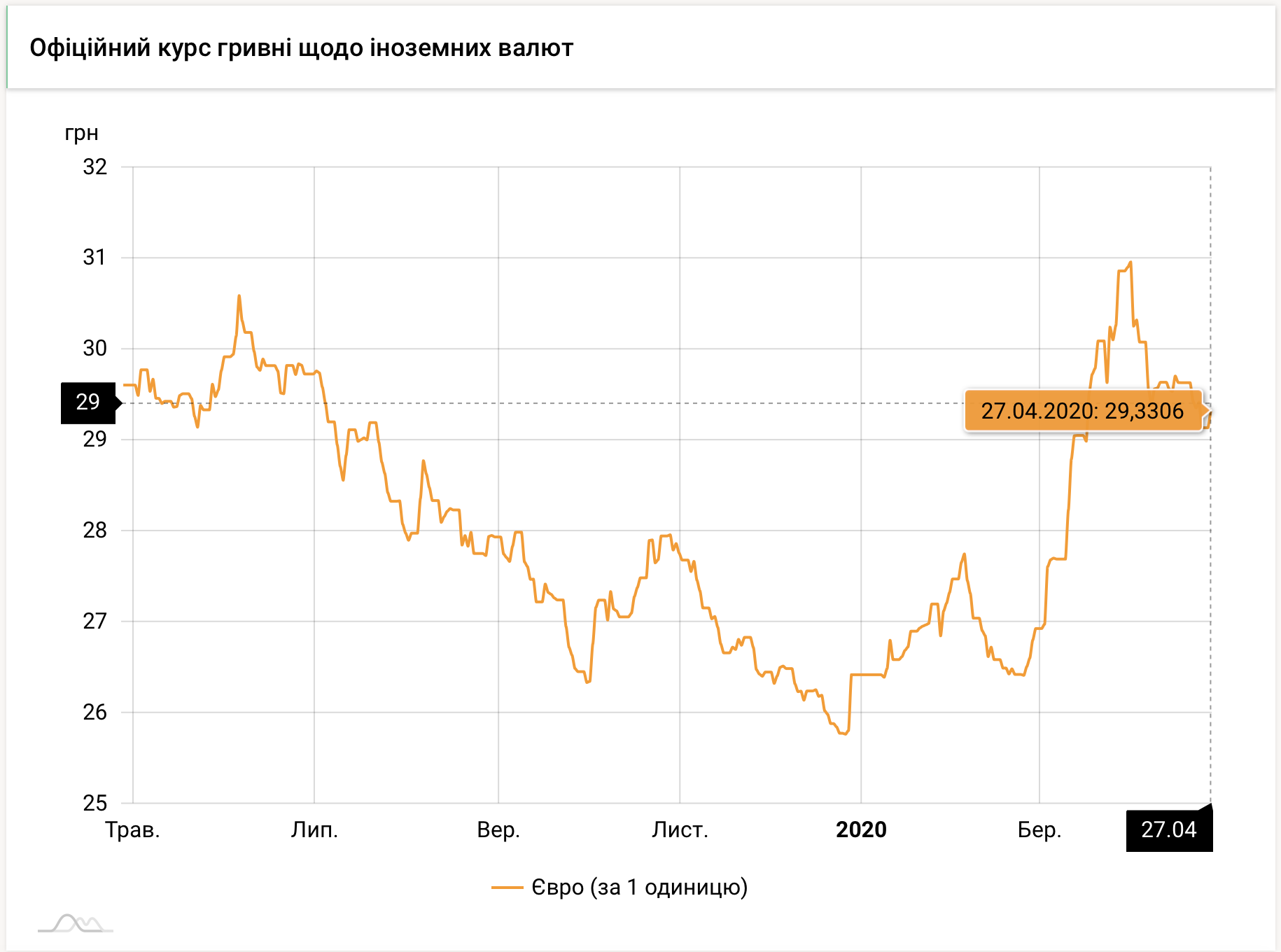 Покупка – 29,20 грн/€