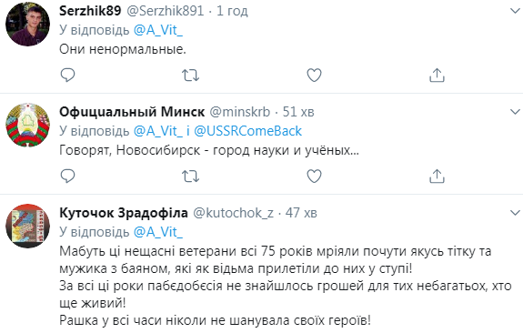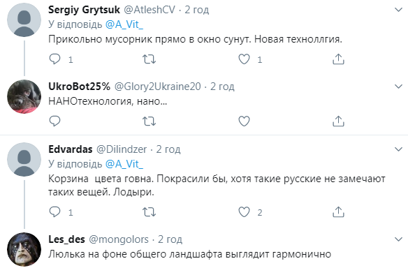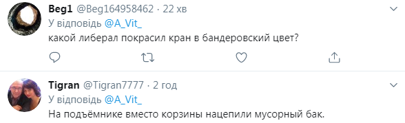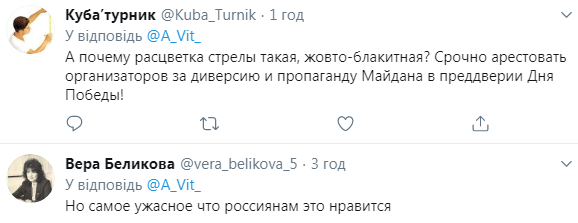 "Когда же закончится это победобесие", "Напоминает поднятый помойный бак", "Покрасили бы, хотя такие русские не замечают таких вещей. Лодыри", "А почему расцветка стрелы такая, жовто-блакитная? Срочно арестовать организаторов за диверсию и пропаганду", "Русский киберпанк", – пишут в Twitter.