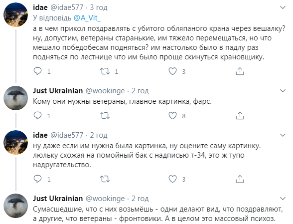 Пользователи сети раскритиковали такие поздравления, отметив, что пенсионерам лучше бы было помочь материально. Другие указали на то, что люльку автовышки даже не удосужились покрасить для приличного внешнего вида.